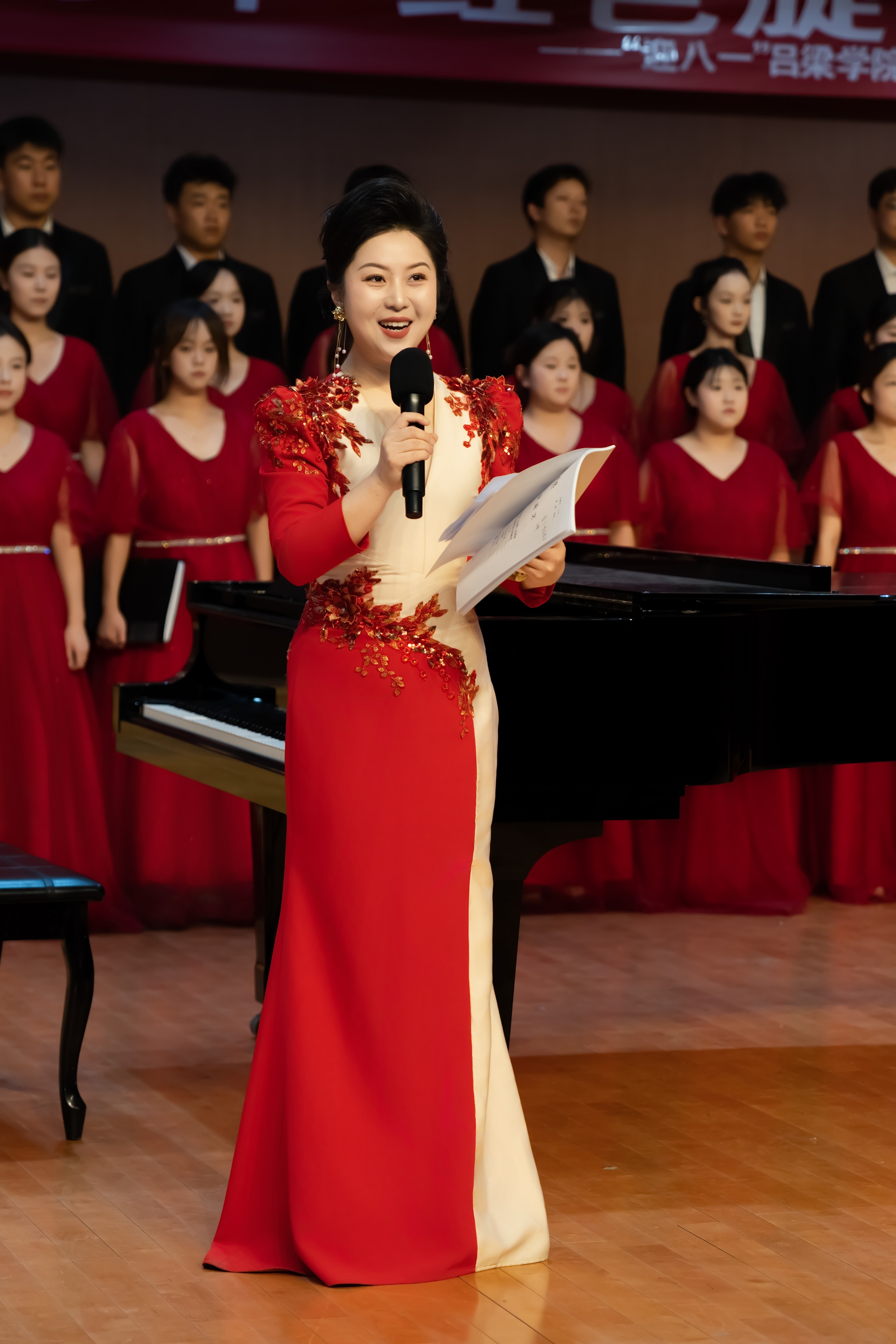 从《吕梁山大合唱》的铿锵有力,到《黄河大合唱》的激昂澎湃,一曲曲红色经典既展现了革命年代的壮志豪情,也传递着军爱民、民拥军的深厚情谊。音乐会现场掌声雷动,经典作品引发现场观众的强烈共鸣,让在场官兵与师生在红色旋律中接受精神洗礼。